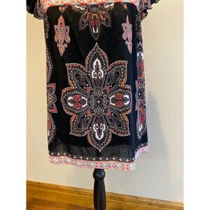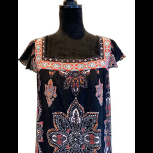 Axcess Blouse Plus Size XL Square Neck Flutter Sleeve Black Orange Boho hippie