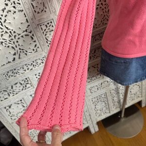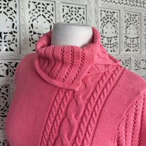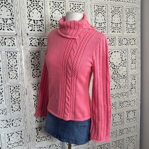 Axcess Liz Claiborne Coral Pink Cable Knit Chunky Bell Sleeve Turtleneck Sweater
