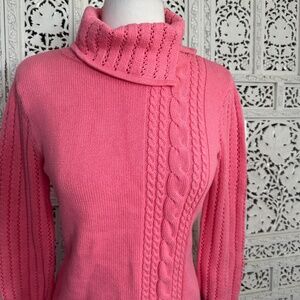 Axcess By Liz Claiborne Coral Pink Cable Knit Chunky Bell Sleeve Turtleneck Sweater Sz Medium