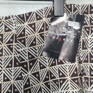 This Axcess Liz Claiborne flowy skirt features a timeless black and white geometric pattern, perfect for any wardrobe. It's brand new, offering comfort and style in an XL size, suitable for various occasions.