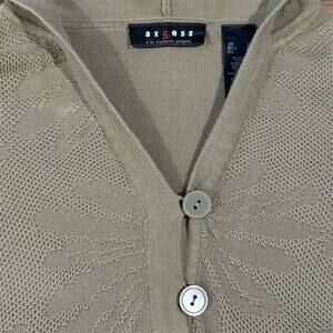 Keywords: Axcess, Liz Claiborne, women's sweater, pullover, V-neck, hooded, cotton knit, beige sweater, casual wear, spring fashion, machine washable, textured knit, relaxed fit, pre-owned.