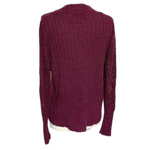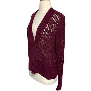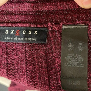 Axcess Liz Claiborne XL cranberry deep v-neck open knit sweater