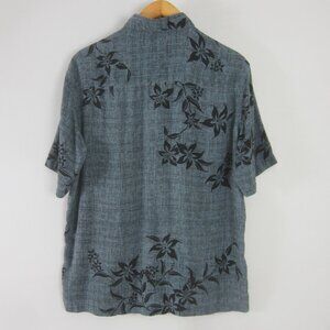 Axcess Men Medium 100% Silk Steel Blue Black Floral Hawaiian SS Button Up Shirt