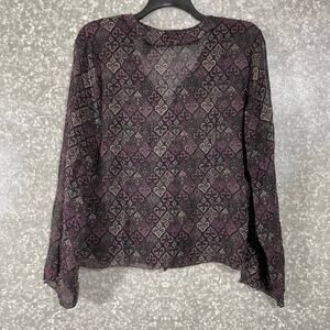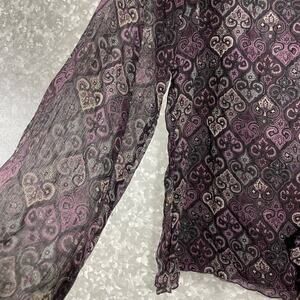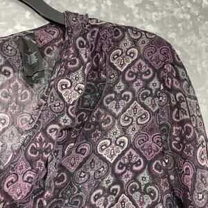 Axcess Purple Paisley Semi Sheer Ruffle Front Blouse - Size 12 - Long Sleeve Top
