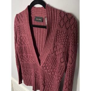 Axcess, Size Medium, Maroon Red Sweater, Open Knit V-Neck, Cozy, Ramie, EUC