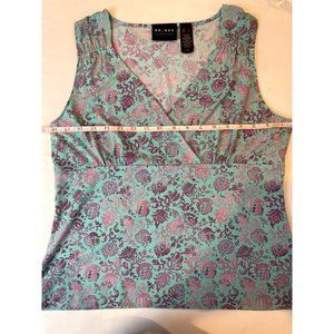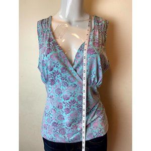 Axcess Women Wrap Blouse Top Leaf Print Sleeveless V Neck Purple Blue Size Large