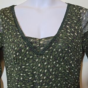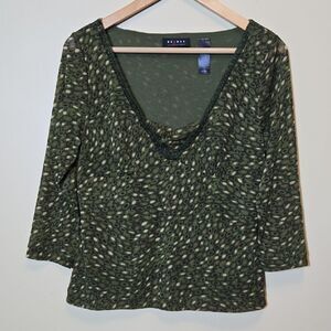 Axcess Women's Mesh Y2K Babydoll Top Size Large Lace Sheer 3/4 Sleeve Peasant