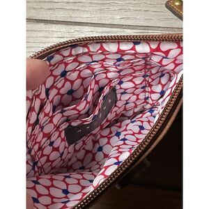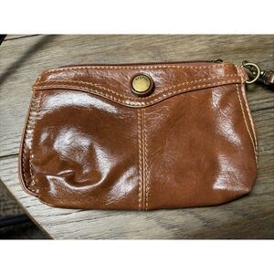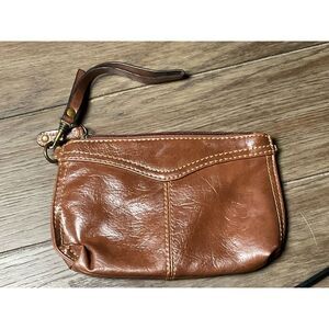 Super cute brown wristlet with brassy tone hard wear. NWOT