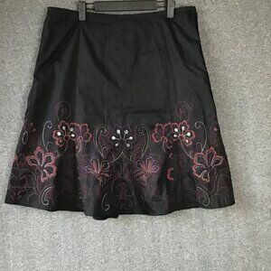 Axcess by Liz Claiborne Black Embroidered Skirt Sz 14