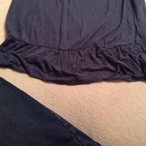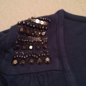 Short sleeves top is bunched at bottom as shown with sequin accents on the shoulders!