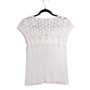 Axcess Y2K Top White Crocheted Knit Babydoll Boho Cottagecore Western L
