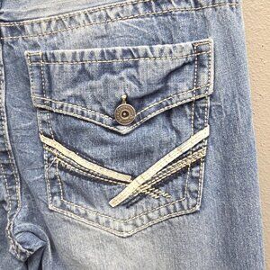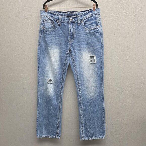 Axe & Crown Jeans Mens 33x32 Blue Slim Boot Distressed Denim Back Flap Pockets