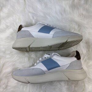 Axel Arigato Genesis Low Top Sneaker in White/Dusty Blue/Leopard