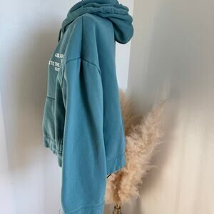 Axel Arigato Green Cropped Women's Hoodie Sweatshirt Split Hem Wide Sleeve Small
