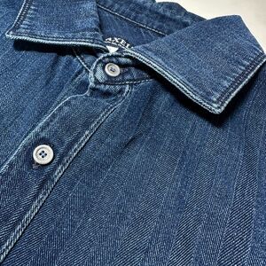 Traditional pointed Collar, button closure, button cuffs, curved hem. The quality, construction and elements of this shirt put it on par with the DSQUARED2 denim shirt, with exception to this shirt's weave....this one has a distinctive Herringbone weave, giving the shirt more visual interest and depth, less rugged more sophisticated. It's unique, discontinued, and never worn.