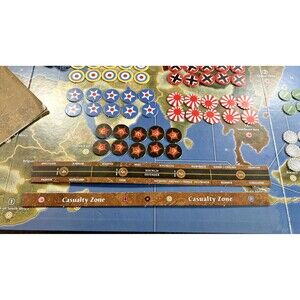 Board game is used, some signs of age and use, but is in good overall condition. 99% complete, black army is missing 1 infantry and one bomer. Complete with all other pieces. See pictures