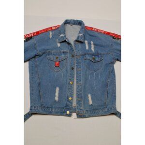 Axis Lab Distressed Ripped Denim Jacket w/Accent Zippers Size Large