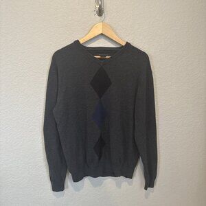 Axist Argyle Sweater Men's Medium Gray Black Knit Pullover Long Sleeve