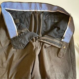 Classic charcoal cotton-poly blend flannel trousers. Machine washable. Light wear on hem, otherwise in excellent condition.