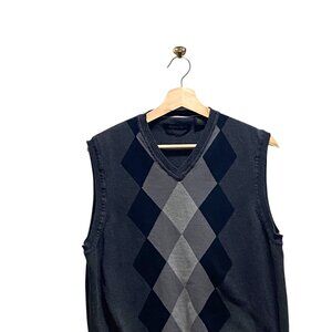 Axist Y2K Argyle Plaid V Neck Sweater Vest Gray Size L Preppy Counteyside Chic