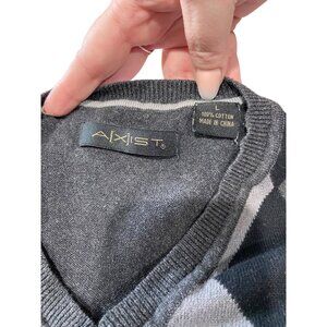 Axist Mens Y2K Argyle Plaid V Neck Sweater Vest Gray Size L Preppy Academia Cozy
