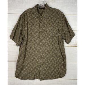 Axist Shirt Mens M Dark Brown Geometric Print Hawaiian Button up Rayon Beach