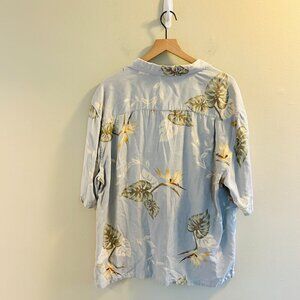 Axist Tropical Shirt Mens Size XL 100% Silk Light Blue Floral Short Sleeve
