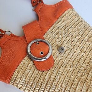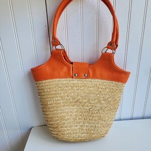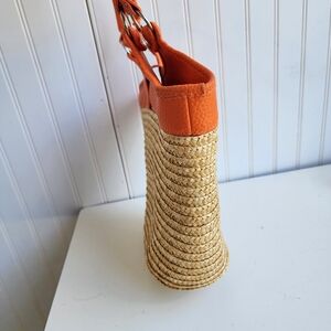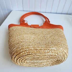 Axiz 100% Straw Purse Orange Beach Tote Use With Straw Hat For That Sunny Day