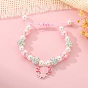Axolotl Charm Bracelet Pink Pearls Adjustable Gift for Girls Kid Daughter