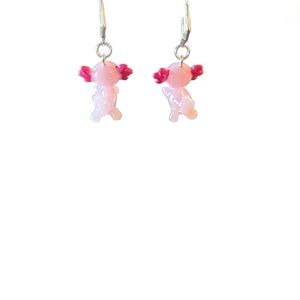 Delightful pink axolotl earrings with a whimsical design. Ideal for adding charm to any look.