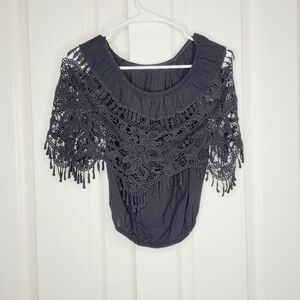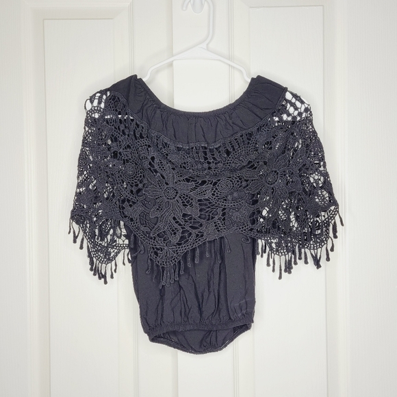 Axul Womens Off the Shoulder Black Crochet Top size Small Boho Western