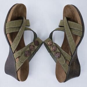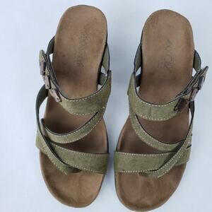 Axxiom olive green wedge vegan sandals size 6 1/2