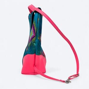 Tags: purse, backpack, bright, iridescent, colorful, bright, shiny, vegan, hot pink, neon