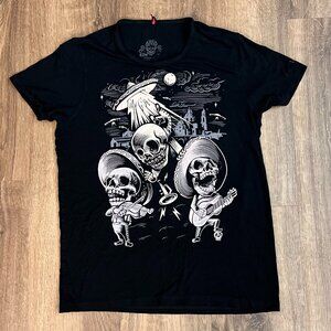 Ay Guey Skeleton Space Ship Glow in the Dark Tee Sz S