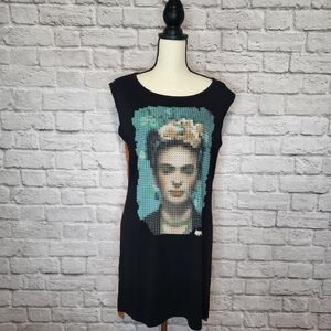 Ay Guey Tunic Top Graphic Frida Khalo Black Brown Split Sides Sleeveless NWT