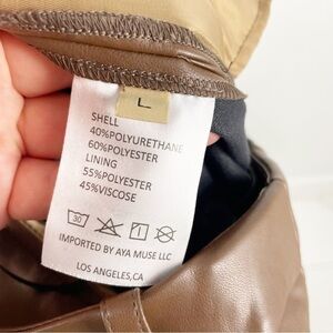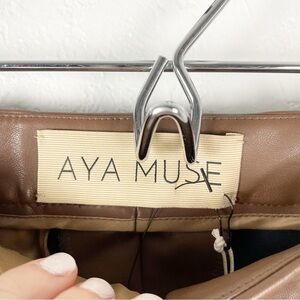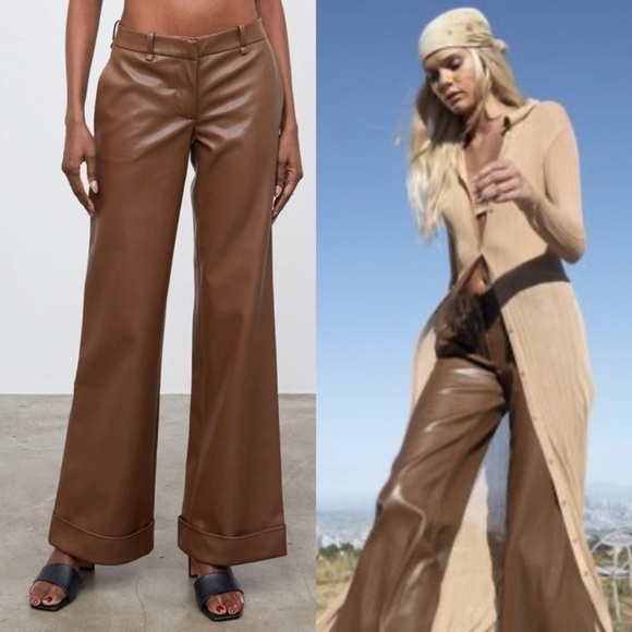Aya Muse Charlie Low Rise Wide Leg Faux Vegan Leather Pants Brown Casual Party