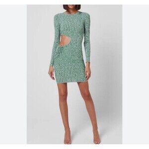 Aya Muse Cut Out Long Sleeve Ribbed Mini Dress Heather Green. Size S / 2-4