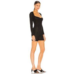 Aya Muse Fiona Ribbed Knit Romper Black Long Sleeve Stretch Minimalist