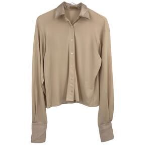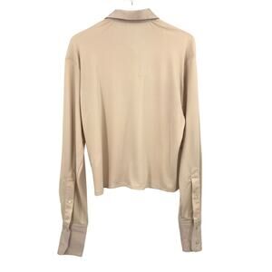 Aya Muse Knit Button Up Shirt Blouse Top XS Collared Womens Long Sleeve Cream