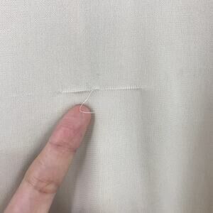 Condition: 2" snag on back of shirt by right shoulder blade, 2 other small snags on back of blouse above bottom edges, missing one button on left sleeve
