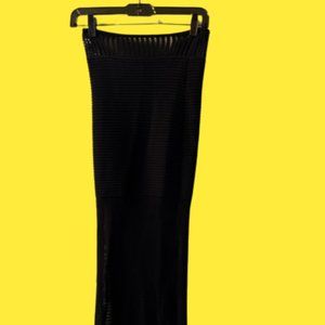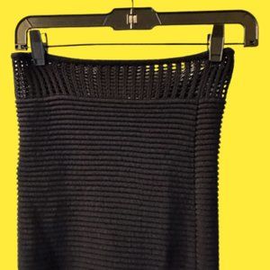 High rise knit contras skirt, featuring thigh high split