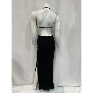 Aya Muse 'Tetra' Black Viscose Dress Size S: unlined, pull-on styling, adjustable halterneck and back strap, plunging neckline, front tie detail, waist cut-outs.
