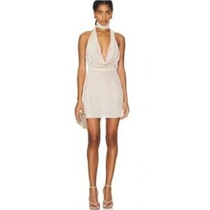Aya Muse Tipo Mini Dress Women's Small Beige Cowl Neck Open Back Halter $650