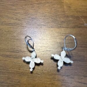 Ayala Bar beaded cross earrings with purple/blue beads with silver drop. 1/2 inch