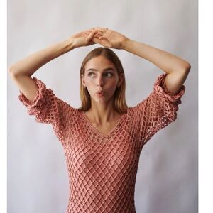 Ayni Pink Coral Crochet Knit Long Sleeve Maxi Dress Resort Swims Cover Up NWOT