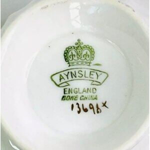 A lovely addition to your china cabinet or tea table in rose pink & white with a touch of gold. This gorgeous vintage teacup & saucer is made of Fine Bone China in England by Aynsley in Hathaway pattern which features tiny rosebuds or posies in pinks with green leaves and a bright gold gilt edge. The cup and saucer have a scalloped gold rimmed edge. There is a small chip on the bottom outer edge of the saucer. Please see my last photo for a close-up.