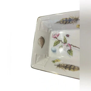 Aynsley Little Switzerland Porcelain Trinket Dish Botanical Feather Ladybug