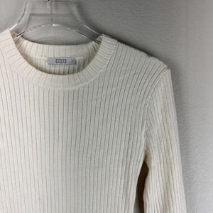 Ayr Dress Women Small Sweater Merino Wool Blend Long Sleeve Bodycon Ivory Cream