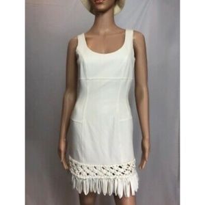 Aysha Womens Pencil Cocktail Dress Fringed White 2