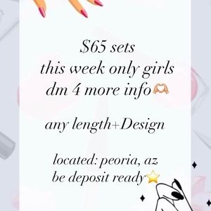 doing a $65 DEAL on any set you would like 🥰. i am in peoria, az . please be deposit ready!!